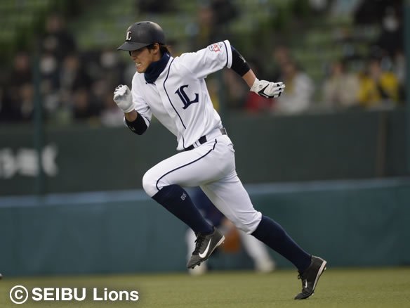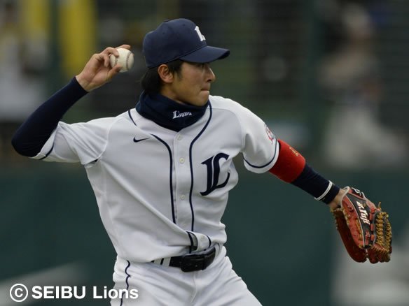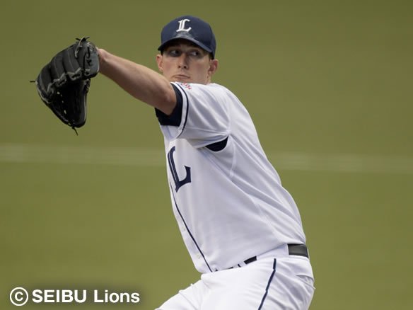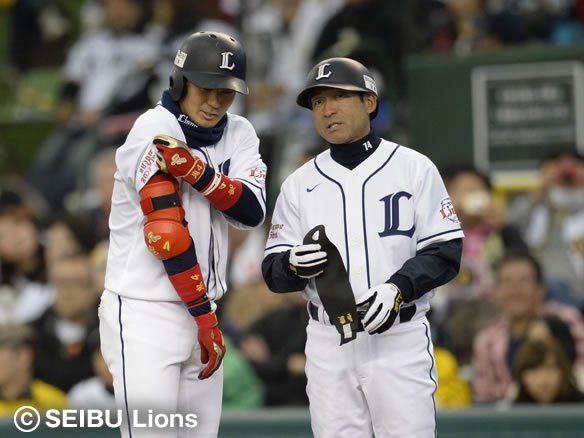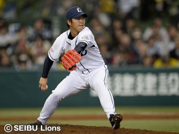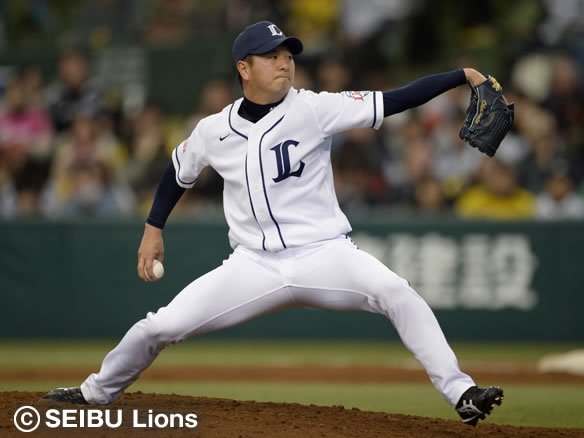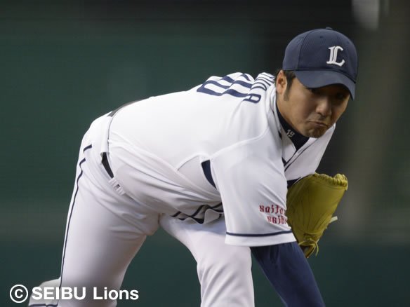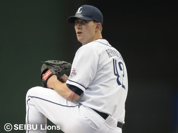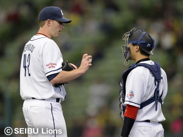 先発は、西武ドーム初見参となるレイノルズ。手元で動くボールを有効に使い、初回を3人で片付けました! |