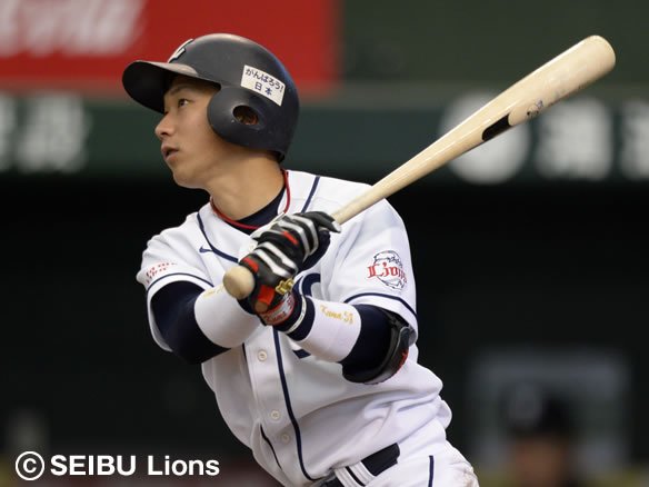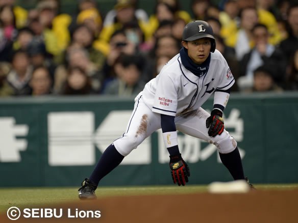 1番 栗山 中安 鋭い打球が二遊間を切り裂いていく! |