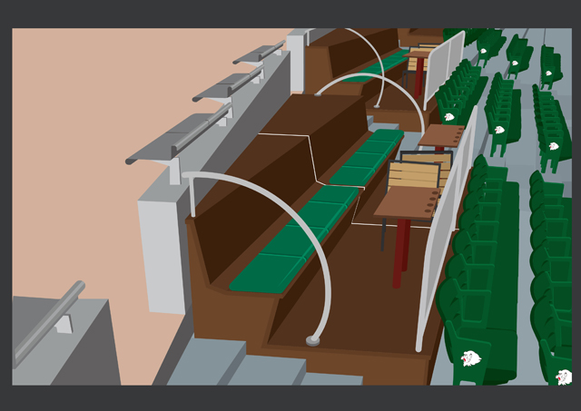 さらに、グループシート(定員4名まで)の「パノラマウッド4」(22ブロック88席)、カジュアルに立って観戦できる「ステンレスカウンター」(257席)の2席種を新設いたします。