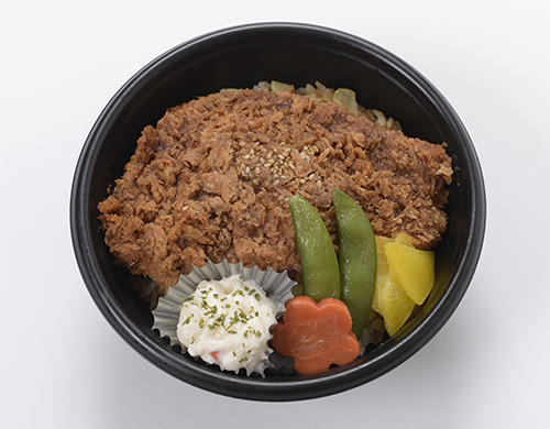 炭谷選手プロデュースの「銀丼」は、「カツ丼がいいです!」の一言から実現したプロデュース弁当。特製旨みソースを絡めた肉厚のカツ丼に、ポテトサラダをトッピングした炭谷選手オリジナルのプロデュース弁当です! 試食した本人も思わず「うまい!」という一品に仕上がりました。