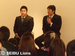 1月8日(土)、昨シーズン、埼玉西武ライオンズ「ゲームスポンサー」としてイベントを実施した「小手指タワーズ」マンションギャラリーにて、上本選手、中村選手のトークショーが開催されました。