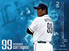 お待たせしました!2月の壁紙・待受カレンダーは、キャンプへ突入し球春到来を告げる、この月にふさわしく、ライオンズの闘将!渡辺監督デザインです。