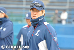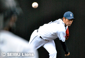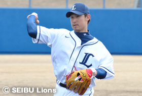 また、明日行う予定の紅白戦に登板予定のドラフト2位・牧田投手がブルペンに入り、調整を行っています。