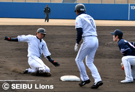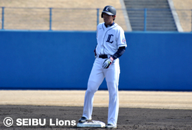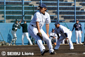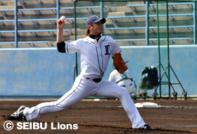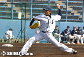 先発は涌井投手。2回を投げて3安打も6人で抑えるエースらしい粘りのピッチングを披露。「この時期にしては良かった。」と本人が語るように、ストレートに伸びがあり開幕を見据えたピッチングに、貫禄すら覚えるマウンド捌きでした。 涌井投手を引き継いだのは、左腕エース・帆足投手。2回1失点も、久しぶりの打者相手の投球に納得の表情を浮かべていました。
