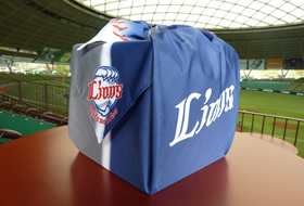 埼玉西武ライオンズ選手・監督がお勧めする食材をLIONSロゴ入り3段重に詰め込み、オリジナル風呂敷でお重を包んでご自宅にお届けします。更にオリジナル祝い竹箸がセットになった豪華な一品となっております。