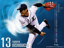 11月の壁紙・待受けカレンダーは、チーム最多11勝を上げ、クライマックスシリーズでもその活躍に期待のかかるベテラン右腕!西口投手デザインです!!