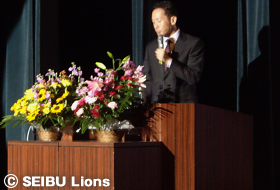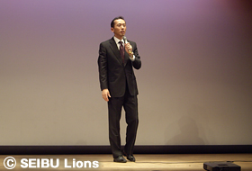 MY PAGE11月11日(金)、所沢市富岡体育館ホールにおいて所沢市PTA連合会役員約100名を対象に青少年への健全育成に寄与する活動の一環として、ライオンズOBの高木大成(球団営業部)が講演を行いました。