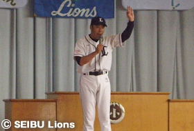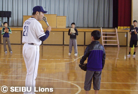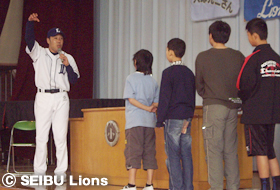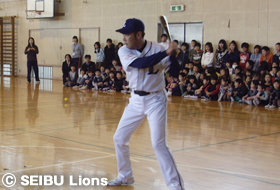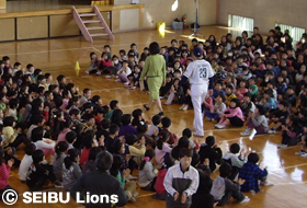 また、各学年児童代表によるレクリエーションでは、野球の基礎であるキャッチボールを通じて、『“相手を思いやること”が、野球だけではなく日頃のコミュニケーションの大切さにつながります。周囲の友達を大事に、仲良く大切にしていきましょう』と熱く説明しておりました。最後に大塚氏を囲み、6年生のクラスで給食をいただき、児童一人ひとりと楽しい会話で盛り上がりました。