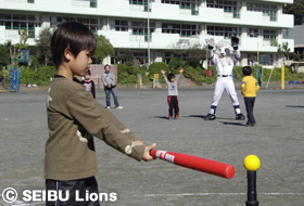MY PAGE埼玉西武ライオンズでは、11月12日(土)、所沢市立北秋津小学校(親子21組44名)と中央小学校(親子20組40名)にて子どもの体力向上支援活動の一環として、所沢市教育委員会および所沢市スポーツ推進委員会の皆さまと「親子ティーボール教室」を開催いたしました。