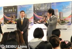 1月7日(土)、昨シーズン、埼玉西武ライオンズの「ゲームスポンサー」として西武ドームを中心にイベントを実施した「小手指タワーズ」のマンションギャラリーにて、牧田投手、熊代選手のトークショーが行われました。