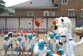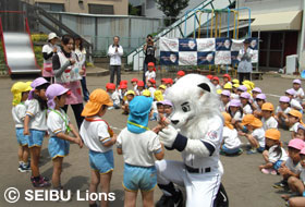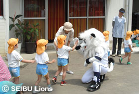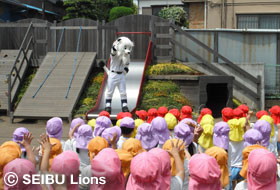 MY PAGE6月15日(金)、埼玉西武ライオンズのマスコットキャラクター“レオ”がさいたま市内の与野本町幼稚園(園児124名)を訪問しました。