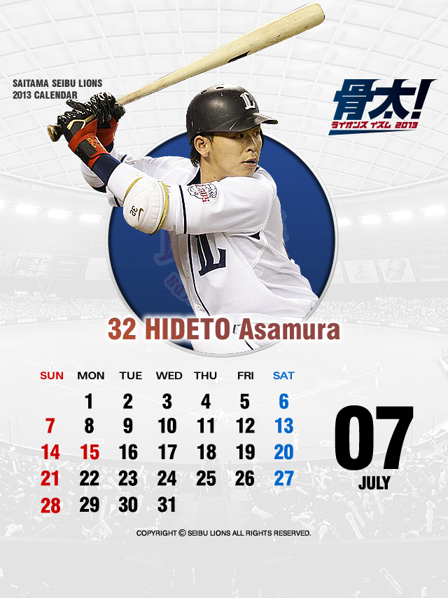 7月の壁紙・待受けカレンダーは、5月29日から4番に座り、チームトップの11本塁打(6/26現在)を放っている浅村選手デザインです!