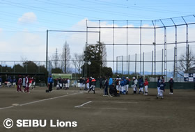 1月19日(日)深谷市北部運動公園野球場にて深谷市少年野球連盟11チーム56名を対象に埼玉県青少年課と協力し、青少年夢の配達便事業深谷市「埼玉西武ライオンズ野球教室」を開催、ライオンズ アカデミー岡村隆則校長・平尾博嗣コーチが講師を務めました。