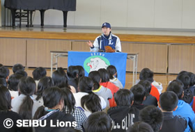埼玉西武ライオンズでは、埼玉県教育委員会が主催する「夢と豊かな心をはぐくむ講演会事業」と連携し、県内小・中学校ならびに高等学校を訪問しております。