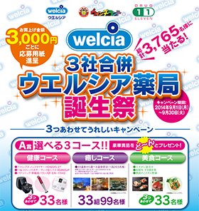 最も目立ったお客さまに「ウエルシア薬局誕生祭」キャンペーンのA賞選べる3コースからお好きな商品をプレゼント!!