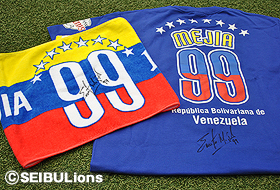 メヒア選手グッズ「メヒア選手Tシャツ」「メヒア選手フェイスタオル」に、直筆サインを入れたものを公式スマートフォン・モバイルサイト会員の方に抽選で各1名さまにプレゼントいたします。