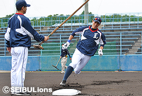 一方の投手陣は「2014 SUZUKI 日米野球」に出場する牧田・高橋両投手がブルペン入り。2投手は後日、南郷から直接日本代表チームに合流します。