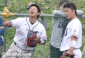 今日は全体練習でウォーミングアップ、ベースランニング、キャッチボール、投内連係、シートノック、打撃練習、ケース打撃、ランニングを行った後、個別練習で炭谷、中田捕手は打撃練習を行いました。