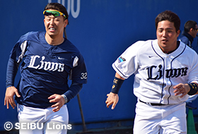 全体練習最後のランニングでは山川選手が猛アピール! 昨年の春・秋といずれもリタイアしている山川選手。体力、特に走力を不安視する声がありましたが、ここまで最後までしっかりとメニューを消化し、今日のランニングでは必死に一緒に走る浅村選手のスピードについていきました。