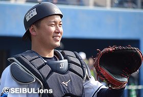 2度目はシート打撃中。同じく走者一二塁の場面で炭谷選手が放った打球をサード・セラテリ選手が横っ飛びで好捕球。そのままサードベースをタッチしセカンド・ファーストと渡り2度目のトリプルプレーが完成! その様子を見ていた栗山選手は「あれはないわー」と炭谷選手をイジり、隣にいた中村選手は「イイもんを見れた♪」とニンマリ。