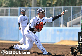 「打撃練習で投げるので、今日は朝起きた時からテンションが上がっていた」という高橋朋投手は木村選手、石川選手に対し変化球を交ぜながらセットポジションから約30球を投げます。