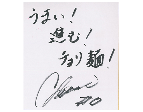 ネーミングは森本選手のひらめき!から生まれ、1枚の色紙に森本選手の想い(?!)を表現してもらいました。こちらの色紙は店頭にございますので、購入の際にはぜひチェックしてください。