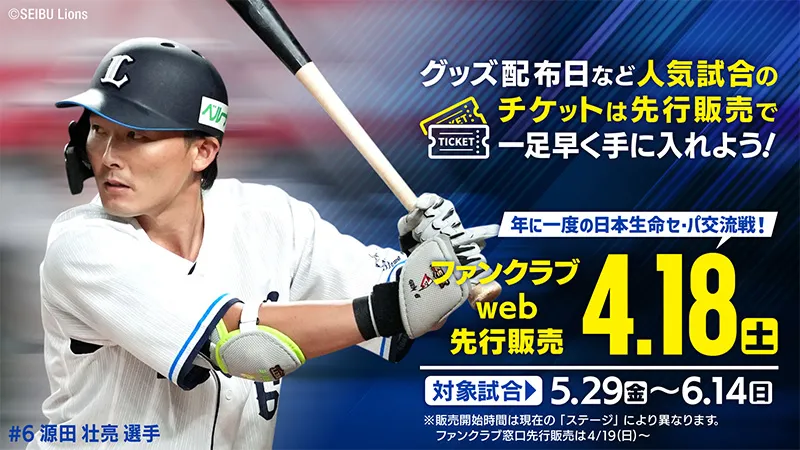チケット2024/04/05 (金)【明日4/6(土)はFCweb先行販売日!】毎年大人気の日本生命セ・パ交流戦チケットは、先行販売で一足早く手に入れよう! -