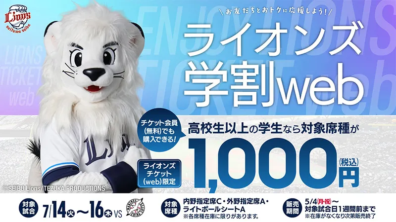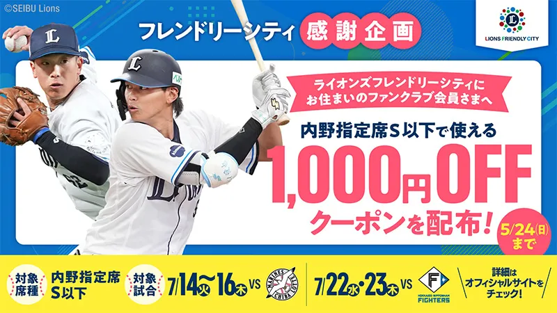 チケット L-FRIENDS2024/03/25 (月)【本日3/25(月)販売開始!内野指定席が『特別価格1,800円~』】 土日含む5月5試合で「フレンドリーシティ感謝デー割引チケット」を販売!(ライオンズフレン… -