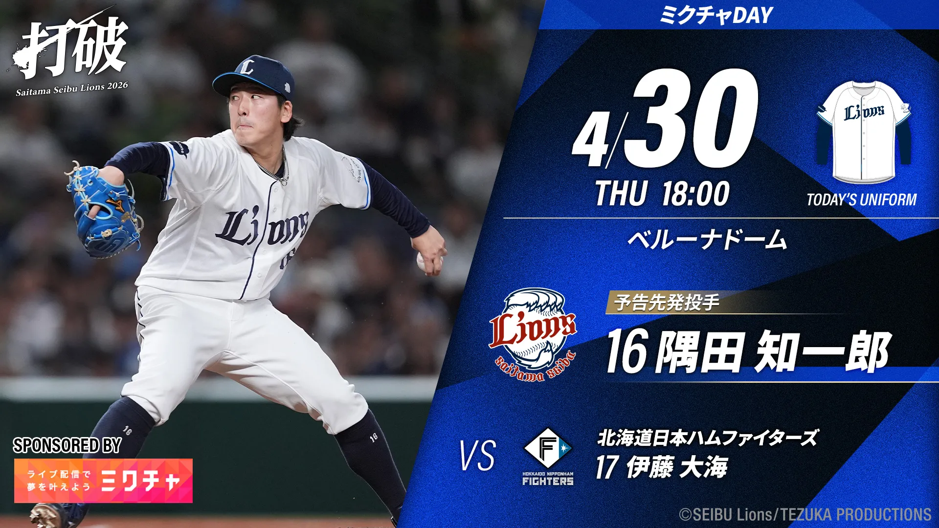 チケット2026/04/22 (水)【4/22(水)更新】<4/9(木)17時販売開始!>4/24(金)~26(日)のファーム・リーグ公式戦はベルーナドーム開催です! -