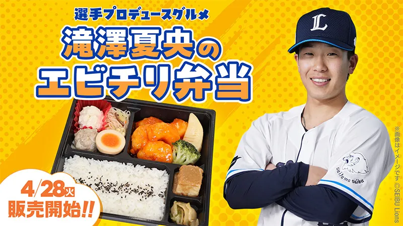 グルメ2026/04/15 (水)4/21(火)~4/30(木)の6試合限定で、外崎修汰選手「通算1000安打達成記念特製選手カード付きグルメ」の販売決定! -
