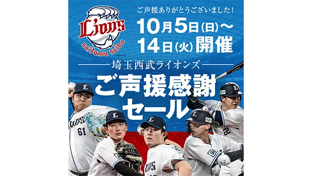 イベント2025/10/05 (日)10/5(日)~10/14(火 )西武所沢S.C. 埼玉西武ライオンズご声援感謝セールを開催! -