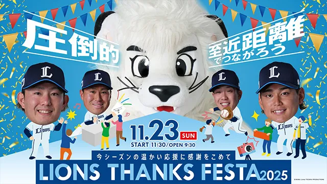 イベント チケット ファンクラブ2025/10/24 (金)今年のテーマは「圧倒的至近距離でつながろう」!11/23(日・祝)開催『LIONS THANKS FESTA 2025』イベント・チケット情報が決定! -