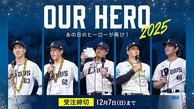 グッズ2025/11/26 (水)本日から平良投手、ネビン選手、西川選手の『タイトル獲得記念グッズ』受注販売スタート!/今年のヒーローを振り返る『OUR HERO 2025』受注販売スタート! -