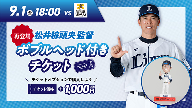 9月1日(金)~3日(日)は西武特急シリーズを開催!選手たちが着用するものと同じデザインのLaviewユニフォーム(非売品)の来場者全員※配布やLaviewユニフォーム(非売品)付きの観戦チケットを数量限定で販売!