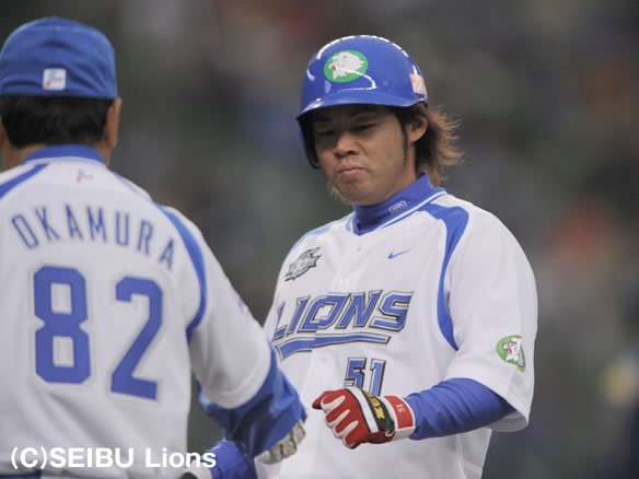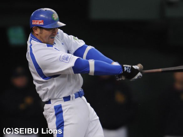 5番 G.G.佐藤 左本 2年連続の開幕戦アーチ!レフトスタンドに飛び込むライオンズ1号ホームラン!で同点に追いつく。L1-1Bs。 ![]() 1