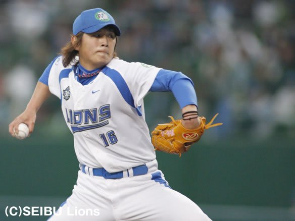 投手 金子 5番 G.G.佐藤 空三振 フォークを空振り三振。 |