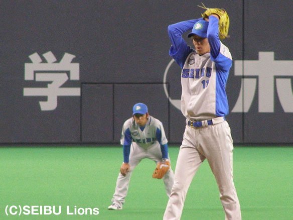 投手 吉川 5番 G.G.佐藤 左飛 痛烈な打球だがレフト正面。 |