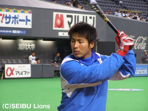 5番 G.G.佐藤 右越二 フェンス直撃の大きな当たり。 |
