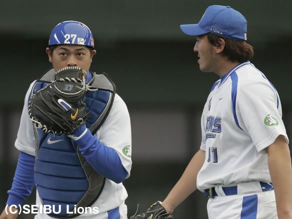 投手 石井 3番 多村 投ゴ 石井一、ブラゼルへゆっくり送球。 |