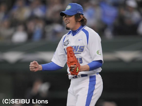 投手 田中 5番 G.G.佐藤 中安 外角のボールにうまくバットを当て、センター前ヒット |