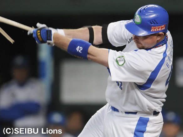 5番 G.G.佐藤 三ゴ ボテボテのサードゴロに打ち取られる |