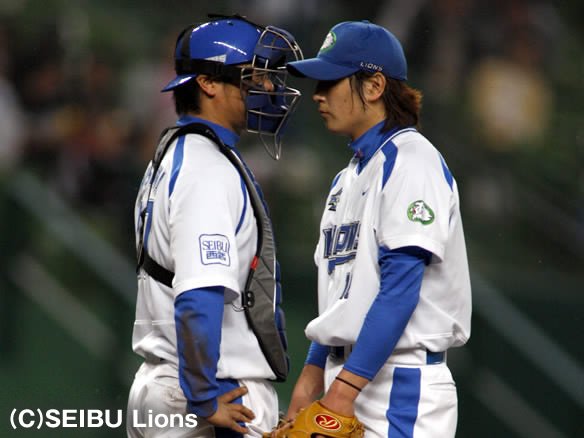 細川、マウンドへ バッテリー入念な打ち合わせ |