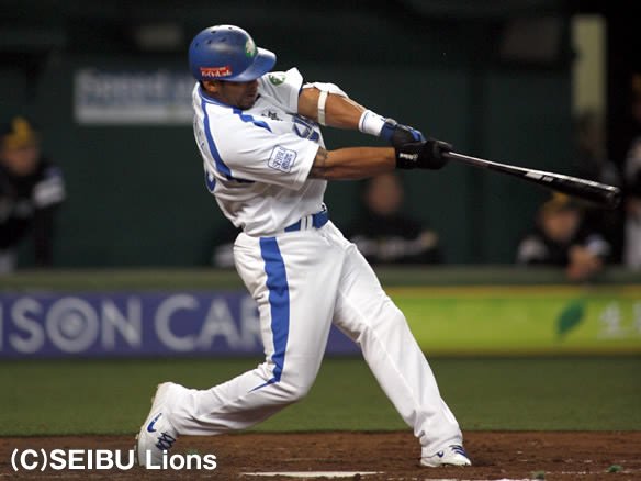 投手 パウエル 5番 G.G.佐藤 二ゴ セカンド正面への緩いゴロ |