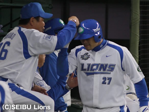 2番 大島 中安 きれいに掬い上げた打球はセンター前のタイムリー!! まだあきらめないライオンズ、土壇場で同点!! ![]() 4