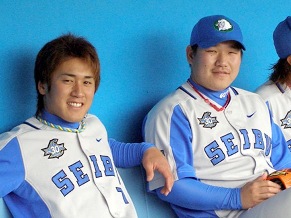 投手 帆足 1番 西岡 右飛 真ん中ストレートを弾き返したがライト守備位置 G.G.佐藤が待って捕球 |