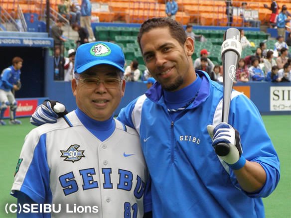 5番 G.G.佐藤 左本 外角よりの変化球を片手で引っ張った打球はそのままレフトスタンドへ!! G.G.佐藤 先制の第8号2ラン!! M0-2L ![]() 0