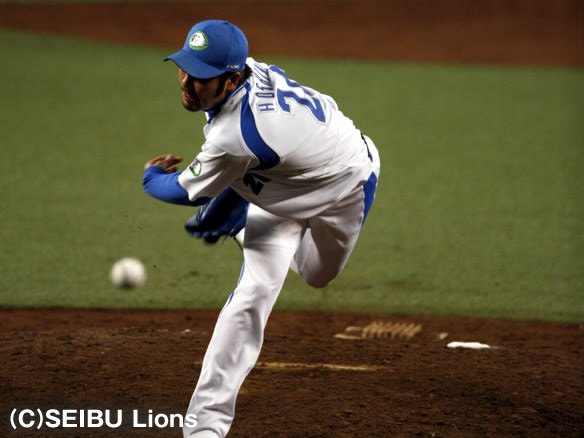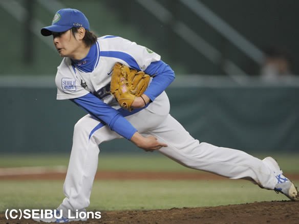 投手 ダルビッシュ 5番 G.G.佐藤 投ゴ マウンド前へのゴロ ピッチャー・ダルビッシュの1塁送球がショートバウンドになり、ファースト・小田転がりながら捕球 |