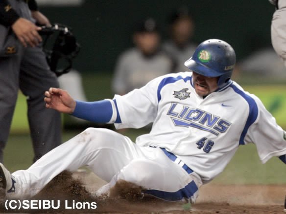 遊ゴロの間に、ホームに生還したG.G.佐藤