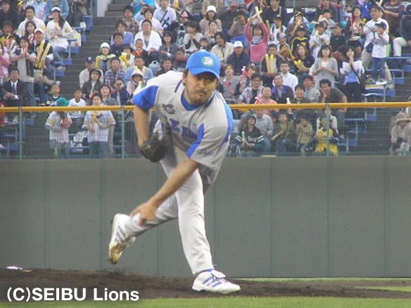投手 石井一 守備のミスも絡みホークスに同点に追いつかれるが、ライオンズの粘りはここから。 |