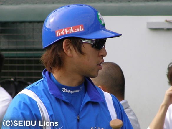 投手 和田 3番 中島 右安 右脚に自打球したあとの6球目ストレートをライト前に運ぶ! |